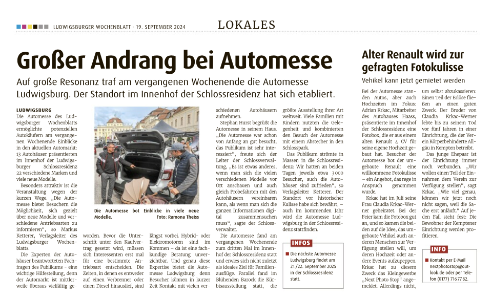 Für unsere eigene Hochzeit hatten wir die Idee, eine eigene Fotobox aus einem alten Auto zu bauen. Da es so gut angekommen ist, soll diese besondere Fotobox nun allen zur Verfügung stehen.